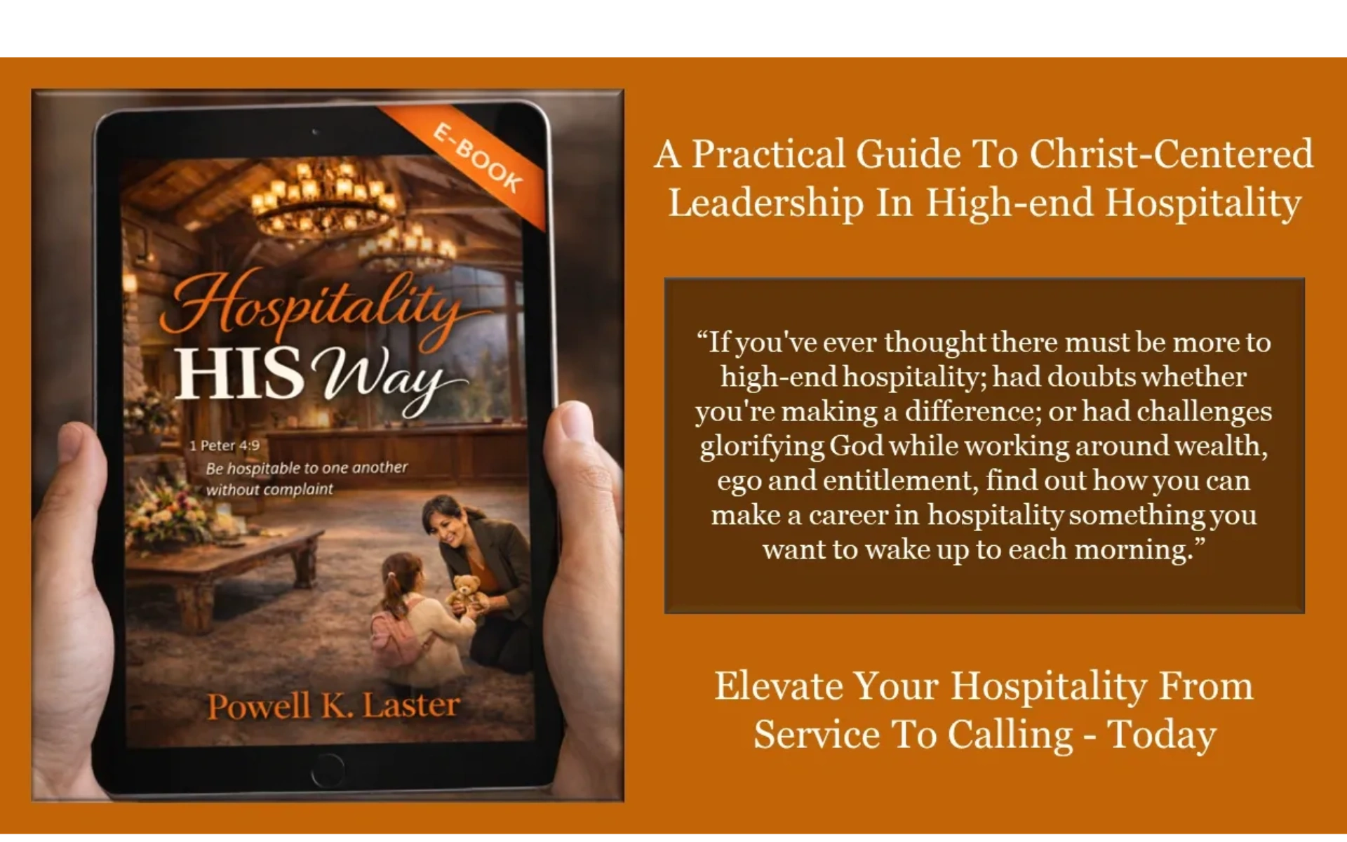 Hospitality HIS Way is a 140-page book that guides you through high-end hospitality grounded in a Christian worldview that professionals of faith will recognize and appreciate. It stands confidently alongside any hospitality philosophy while offering a perspective shaped by purpose and service. Along the way, you’ll find practical wisdom